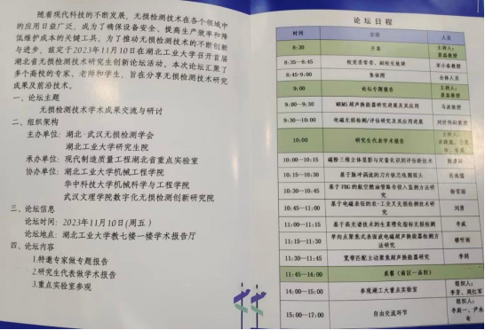 11月10日,首届湖北省无损检测技术研究生创新论坛在湖北工业大学隆重召开。本次论坛由湖北·武汉无损检测学会、湖北工业大学研究生院主办,现代制造质量工程湖北省重点实验室承办,湖北工业大学机械工程学院、华中科技大学机械科学与工程学院、武汉文理学院数字化无损检测创新研究院协办。